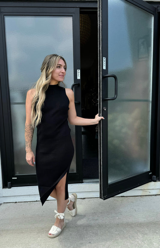 Ribbed Tight Black Midi Dress