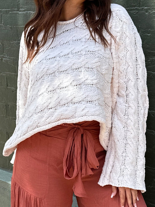 Semi-cropped Chenille Sweater With Twist Cable Detail