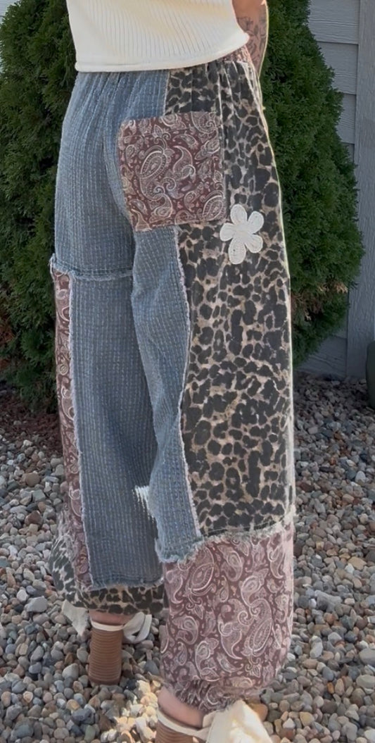 Grey Paper Bag Textured Wide Leg Waist Pant