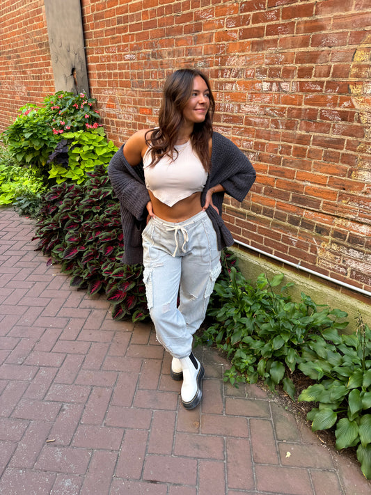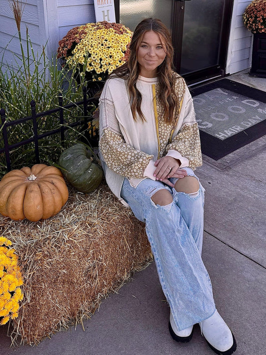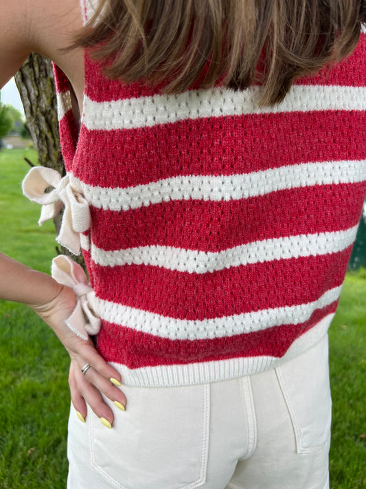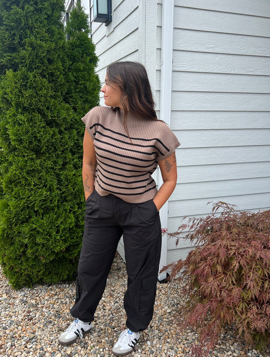 Mocha Stripe Funnel Neck Drop Shoulder Knit Top Sweater