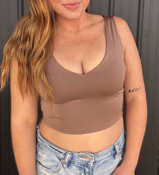 Brown Mock Neck Sleeveless Cropped Knit Top