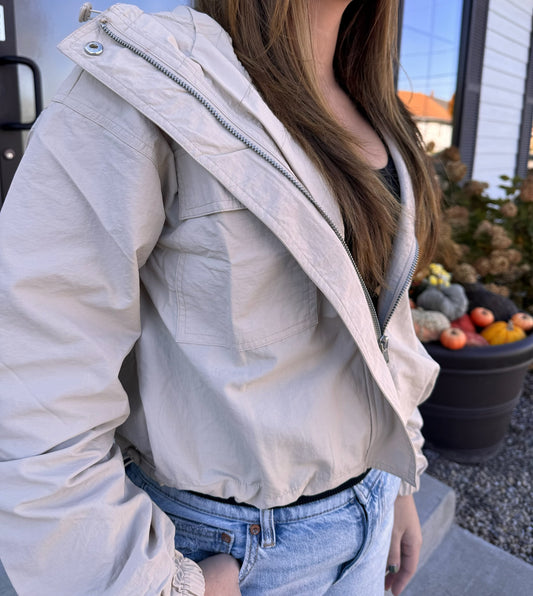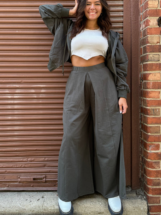 Charcoal Zip-up Hooded Jacket Wide-leg Pant Set