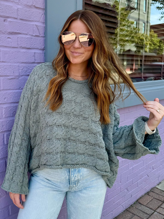 Semi-cropped Chenille Sweater With Twist Cable Detail