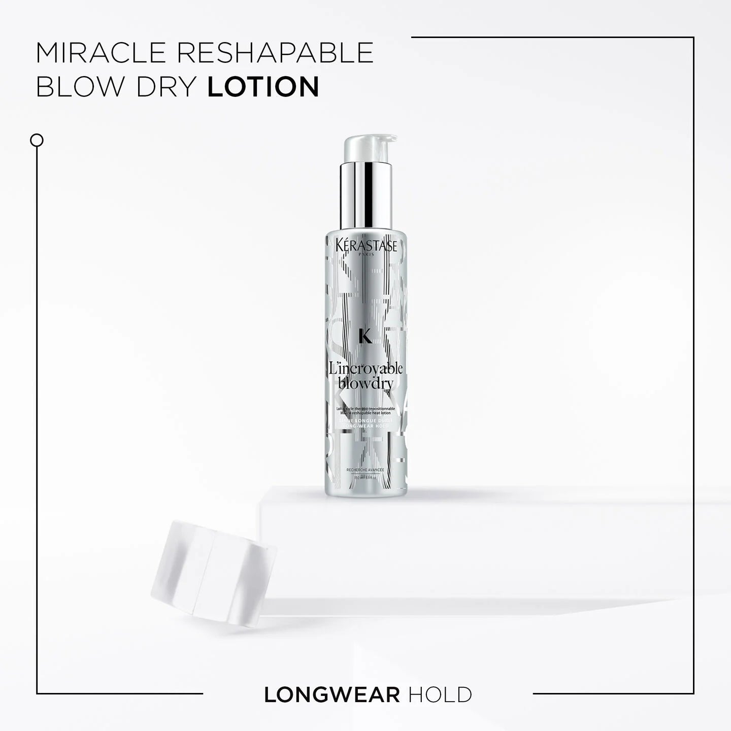 For fine to normal hair, apply two pumps of L'incroyable blowdry lotion into hands. Distribute on towel-dried hair and blowdry for desired look. Restyle or change the look easily with the use of heat tools. No product reapplication necessary.